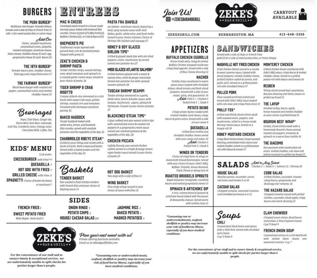 The “Zeke” of legend was actually a stray pup who decided to make his home at the golf course back in May 1991. He ultimately became the beloved family dog of Bill and Beth Sandri and the restaurant that bears his name has been the mainstay of the 19th hole at Crumpin- Fox Club for over 25 years. Over the years, Zeke’s Grill has specialized in keeping it simple and doing comfort food right. Serving up classic pub food sure to please golfers, locals and travelers alike. In 2017, we doubled the size of our outdoor dining area and introduced The After-Deck at Zeke’s as well as an outdoor pavilion for larger groups. No round is complete without a visit to Zeke’s! What better way to end a great day on the course than sipping on a drink and enjoying a meal as you look out on the 18th green? There’s also plenty of room for non-golfers to come up and enjoy the relaxing and friendly atmosphere we provide as well.