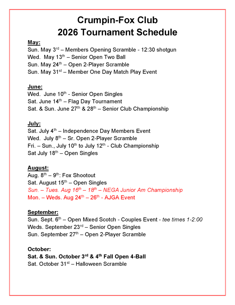 2026 Tounament Schedule